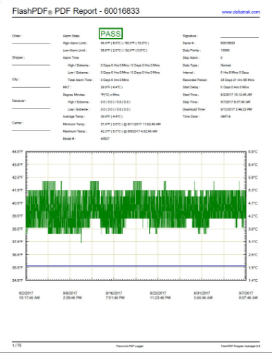 FlashPDF Program Manager software can be used to reconfigure the logger making it possible to repurpose the device for either a refrigerated or frozen storage case. This optional software is a user-friendly program presenting customers with a view of the recorded data in numeric or graph formats, with customizable fields, statistical data and alarm functions.